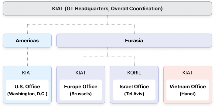 * GT offices are operated by Korea's dedicated R&D agencies in the United States(Washington), Europe(Belgium, Israel), and ASEAN(Vietnam).