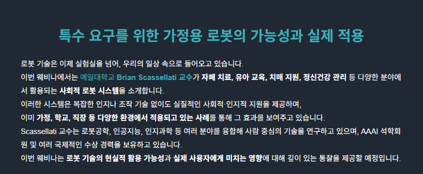 There is a great interest in developing robots to support special needs within the home. From tutoring systems for young children to systems that support adults with dementia, these machines provide vital social and cognitive support without the need for complete solutions to navigation, perception, manipulation, and other traditionally challenging areas. In this talk, Professor Scassellati will demonstrate some of the systems that they have deployed in homes, schools, and workplaces, review some of the benefits that these systems can provide, and talk about why these applications are ready to have an immediate impact on real-world products. |